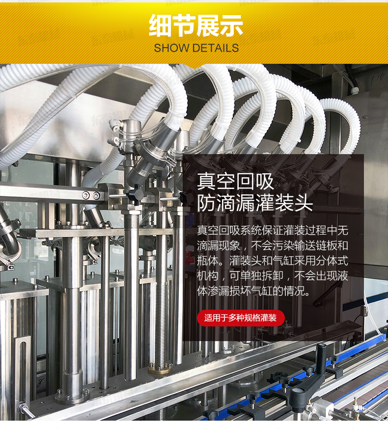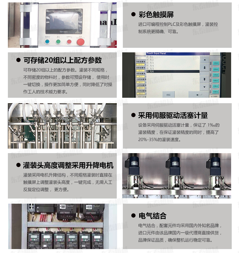 該機是我司很新研制的潤滑油灌裝機,設備集光、電、氣于一體,由PLC配合人機界面(觸摸屏)控制,從進瓶、定位、灌裝、出瓶等動作均全自動完成。采用直流式灌裝,與物料接觸部分均采用出色不銹鋼和食品級材料制成,符合食品衛(wèi)生要求;自動化程度高,性能穩(wěn)定,生產(chǎn)速度快,灌裝準確,操作簡單、調整方便,適應性強等特點。